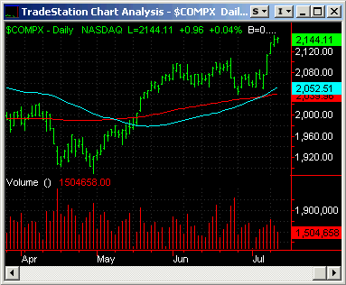 that has propelled the NASDAQ above prior resistance at the 2,100-level.Â