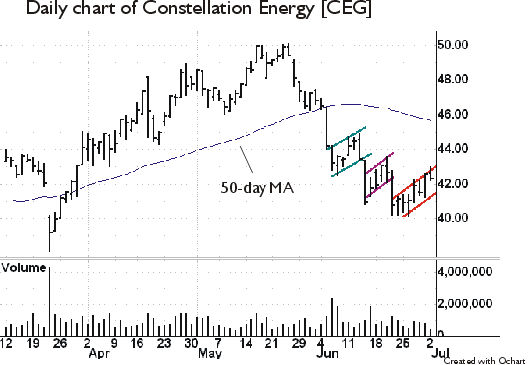 As you can see on its daily chart below, CEG is trading the inside of a third